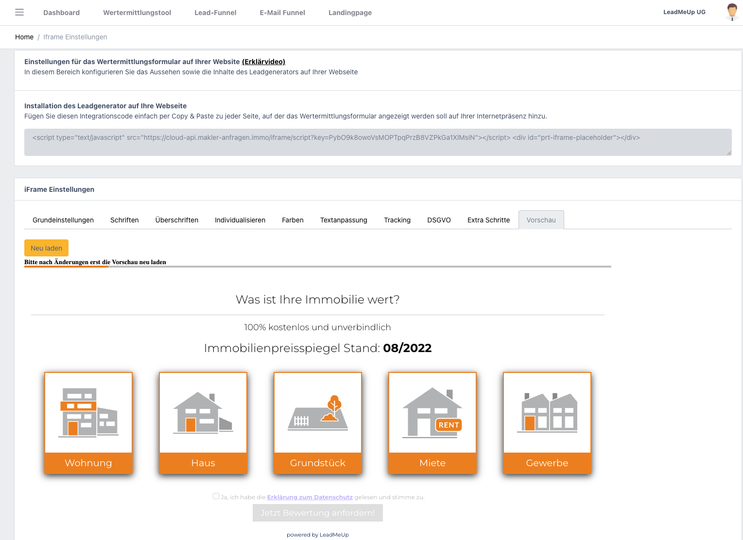 Über den Leadgenerator erhalten Verkäufer eine erste Werteinschätzung, und Sie erhalten Qualifizierte Immobilien Leads.